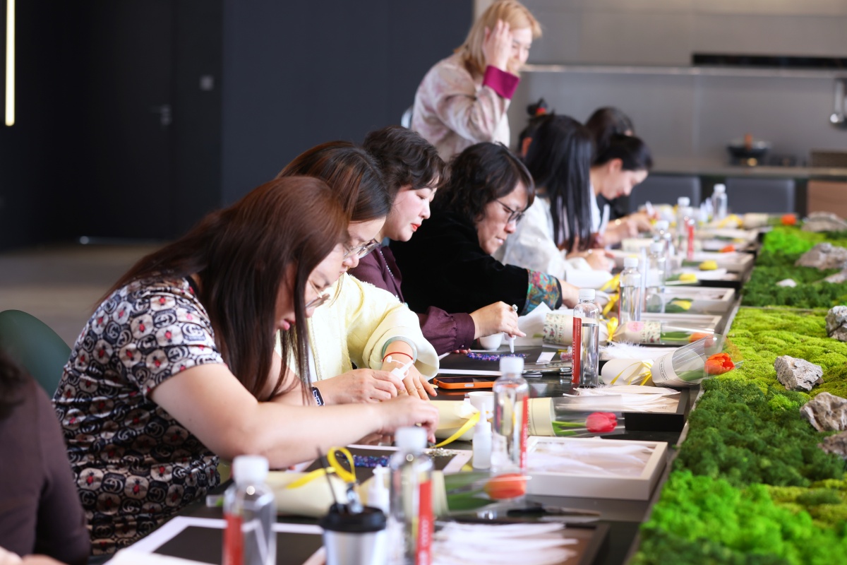 活动现场笑语盈盈,嘉宾们专注创作,交流心得,在慢时光中感受手作的疗愈力量,也完成了对自己的一份独特节日献礼。