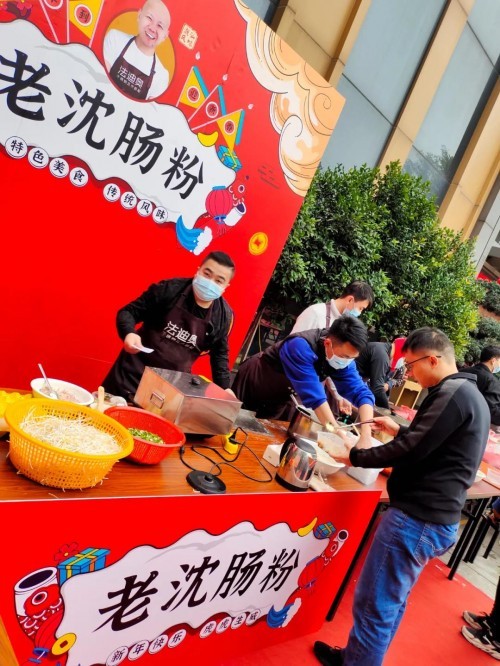 亲手为员工们烹制潮汕风味肠粉和饺子