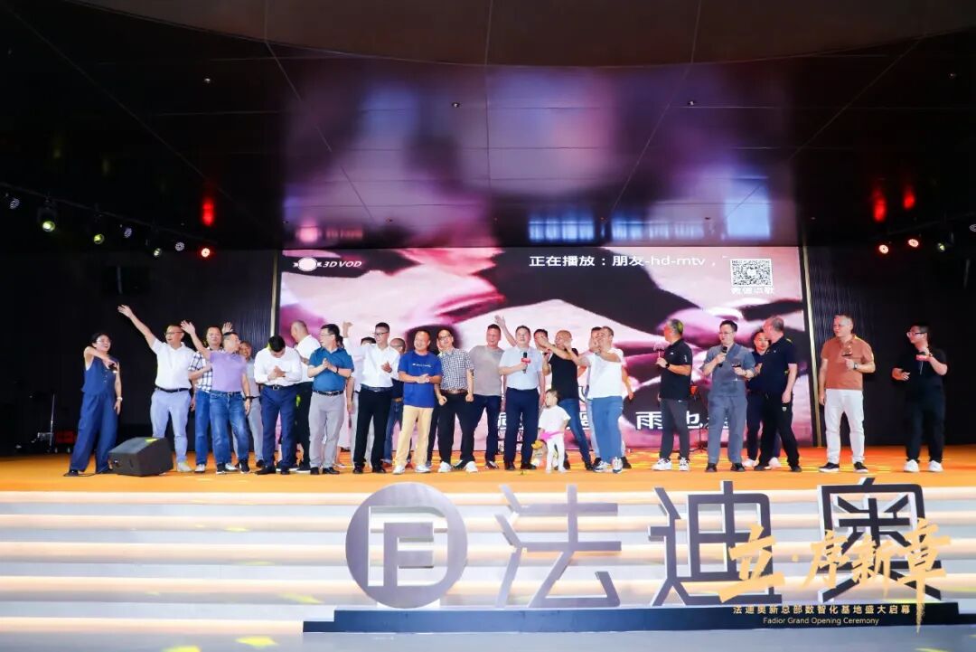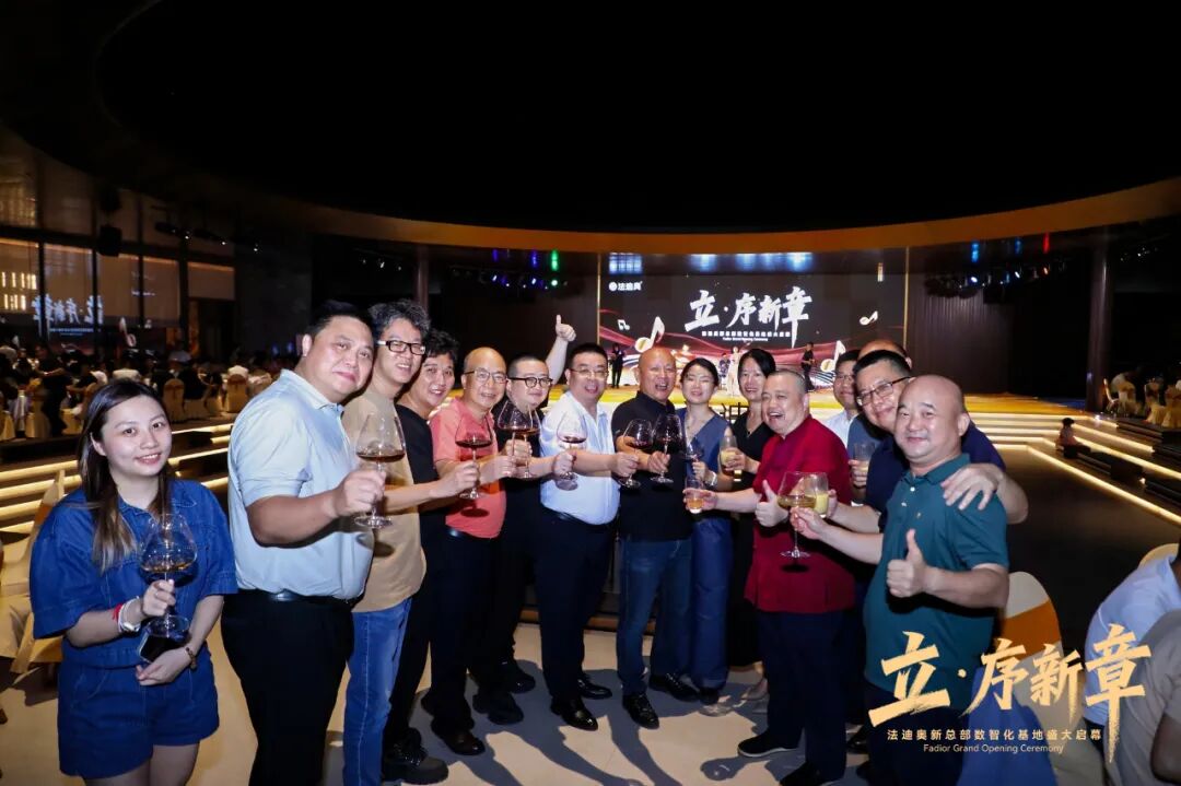 共同登台,举杯与领导嘉宾们共同庆贺豪利777新总部数智化基地圆满落成。