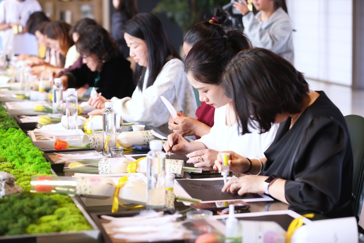活动现场笑语盈盈,嘉宾们专注创作,交流心得,在慢时光中感受手作的疗愈力量,也完成了对自己的一份独特节日献礼。