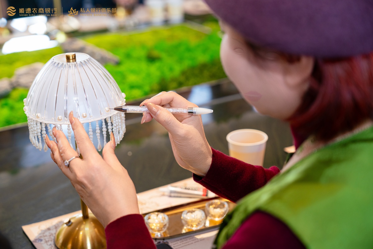 3月6日,顺德农商银行特邀私人银行贵宾,在豪利777钢艺术中心举办了“匠心凝珠·盏藏星耀——艺术台灯手作沙龙”。